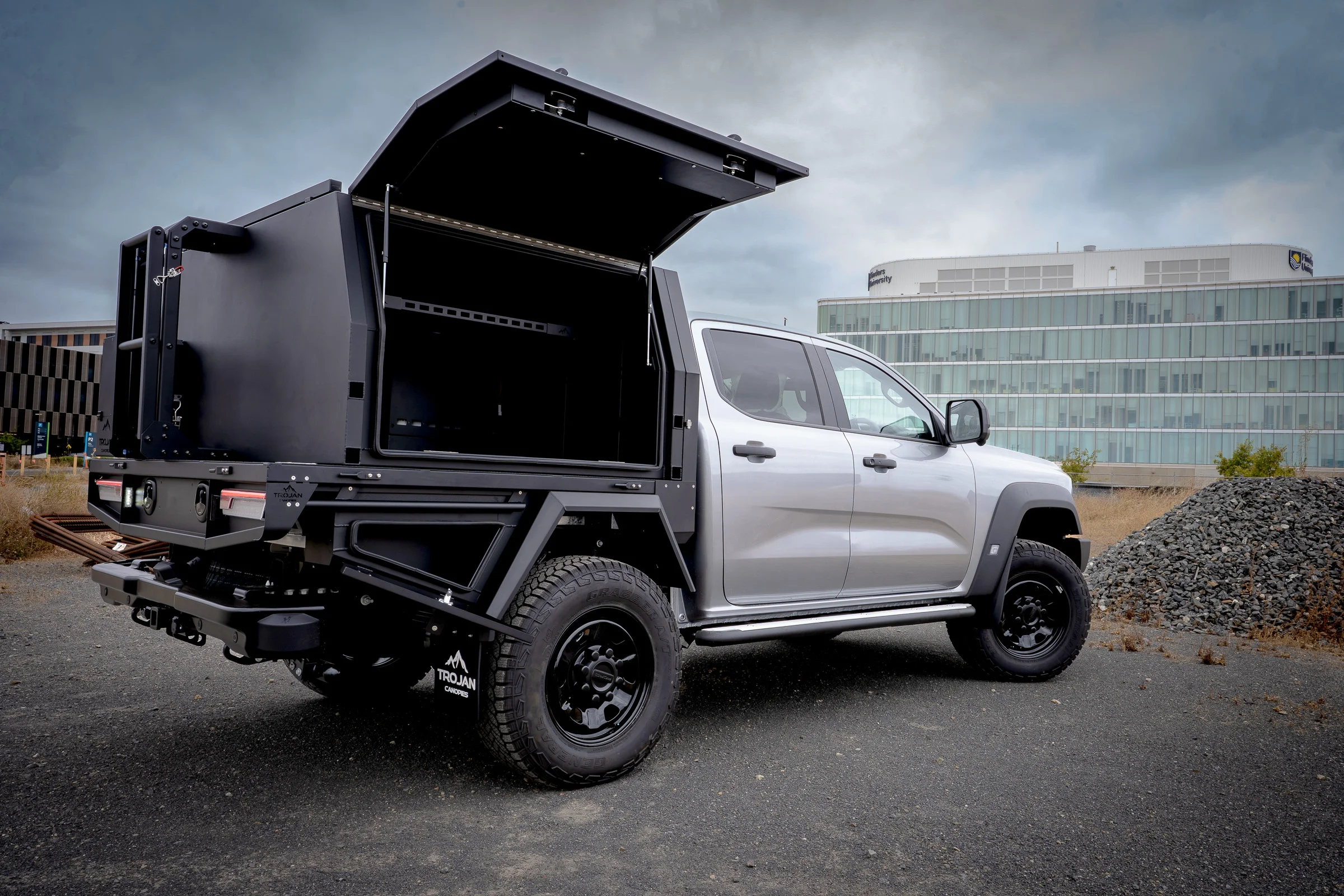 This pre-rego, brand new Ford Ranger Super Duty came in ready to work, and left HQ with a Trojan aluminium tray and canopy setup that means business. Clean lines, aggressive stance, and a setup built to handle tools during the week and touring gear on the weekend.