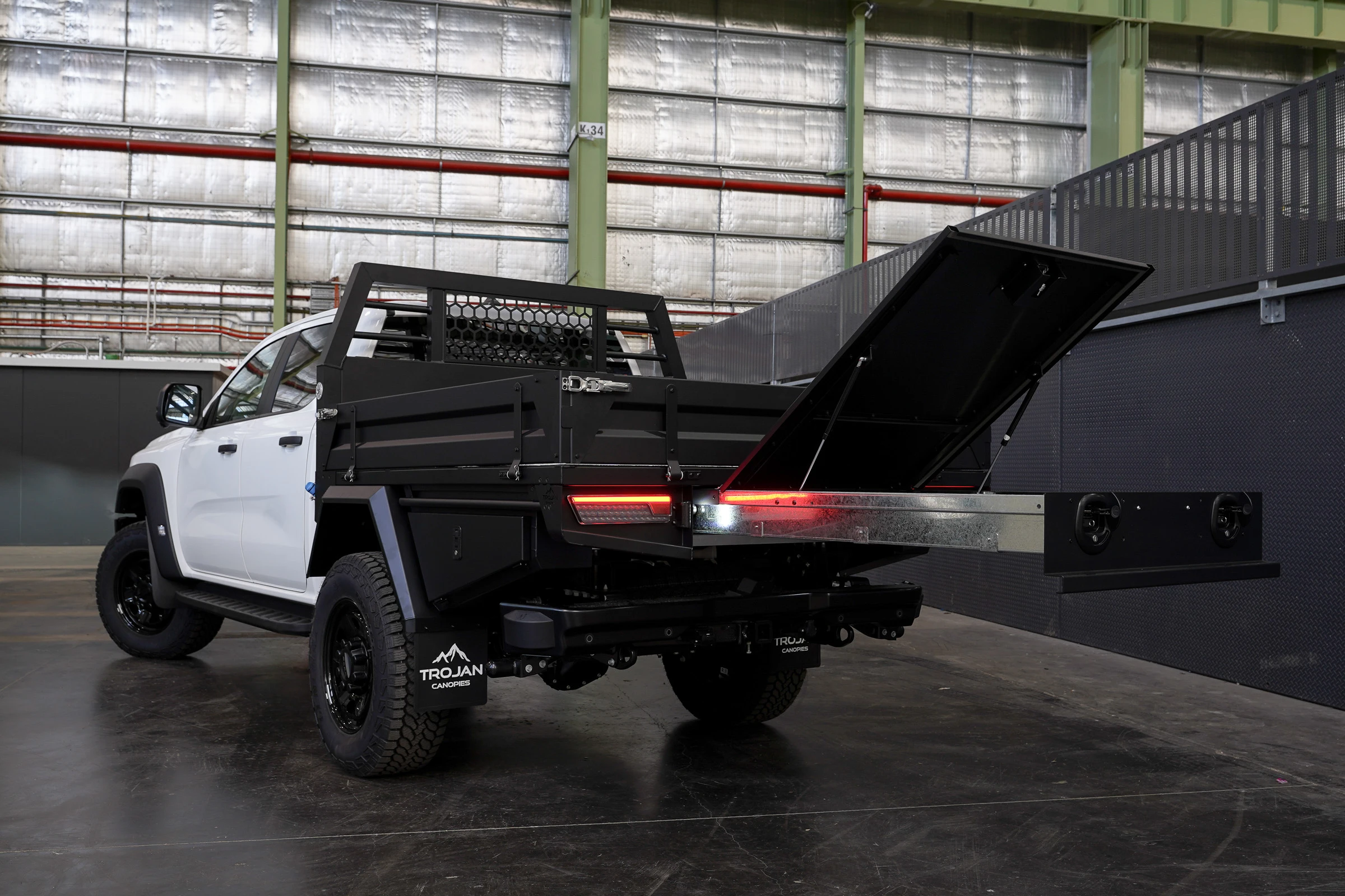 Starts with our 1600mm long and 1850m wide Aluminium Tray. This is our go-to size for solid rear clearance, it’s especially handy for anyone planning to tow. The tray comes packed with Trojan’s standard features, including: