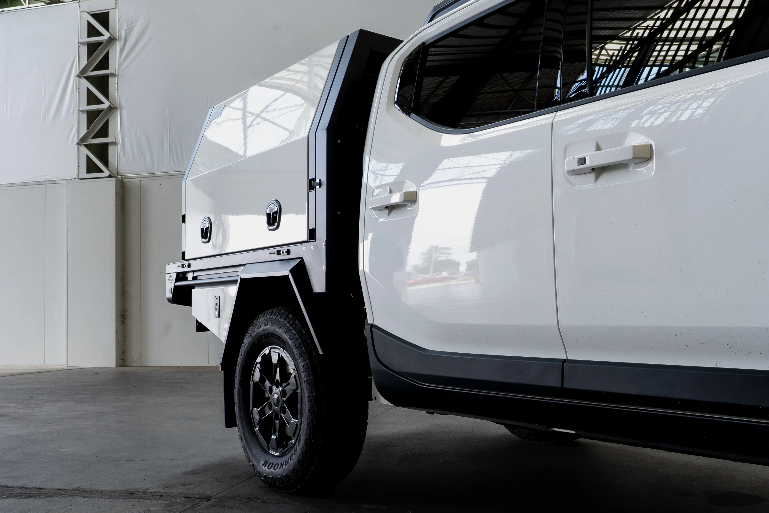 The 1600mm alloy tray forms a solid foundation, offering strength without the weight. The integrated undertray toolboxes are colour-matched for a seamless aesthetic, balancing practicality with style.