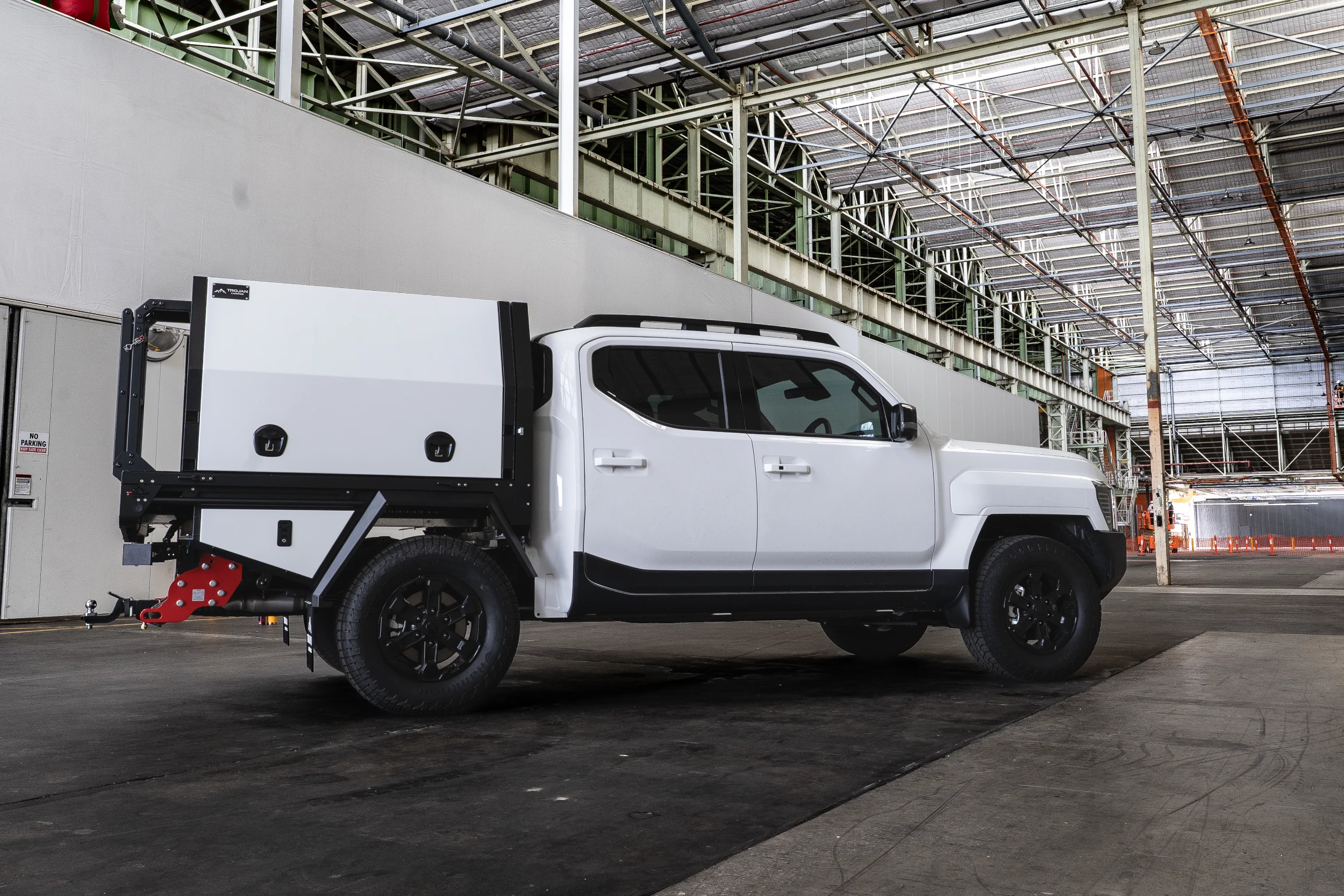 The rear ladder provides access to roof racks or roof-top tents, while the colour-coded canopy and toolbox doors give a premium, OEM look that perfectly complements the Tasman’s clean design lines.