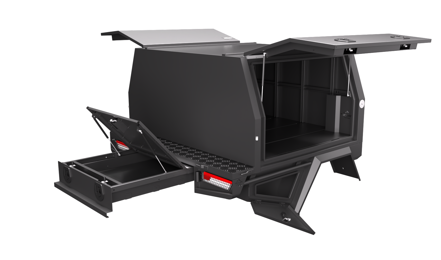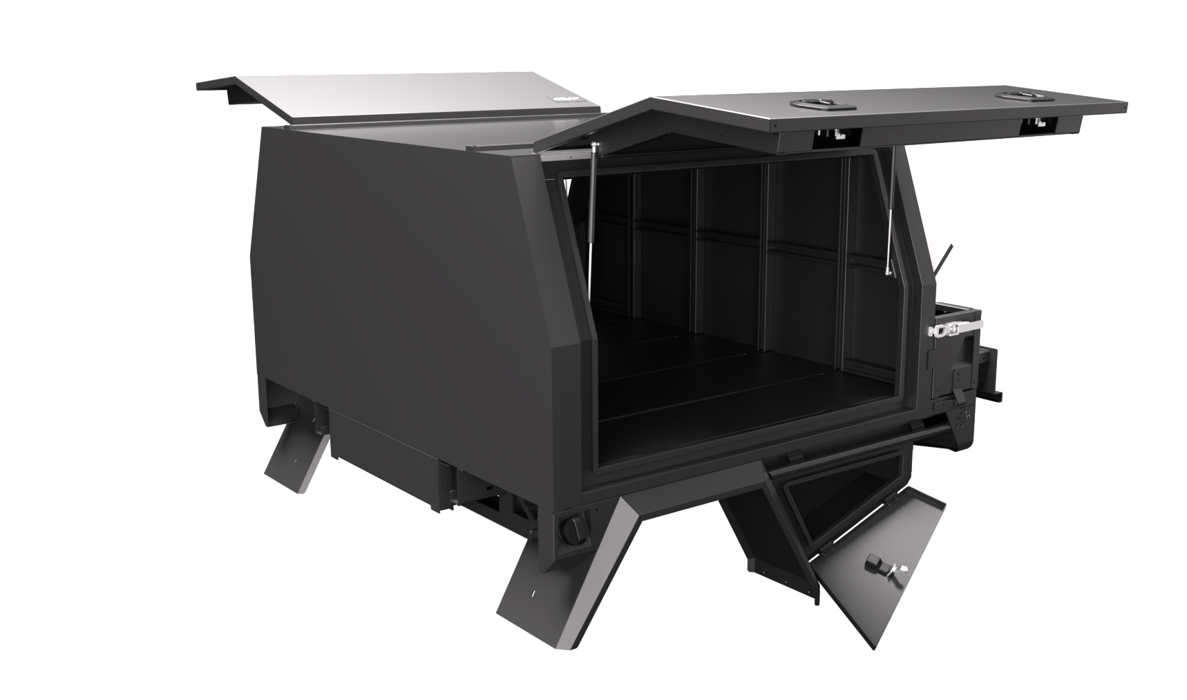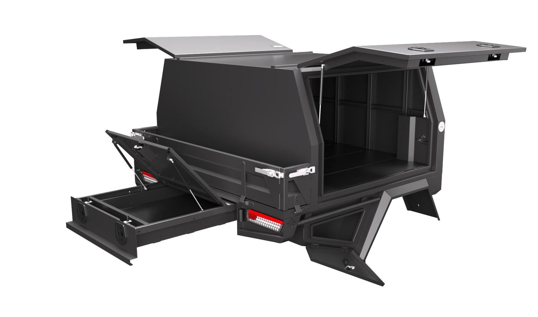 Our design and engineering team has always focused on making super durable canopies while keeping them lightweight and modular. The Chassis mount canopy is the perfect balance of weight and price savings. Our Service Bodies with a 3/4 canopy come in an ideal standard size of 1700mm long, 1850mm wide, and 860mm high. Some of our favourite features include: