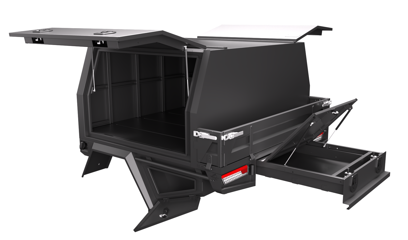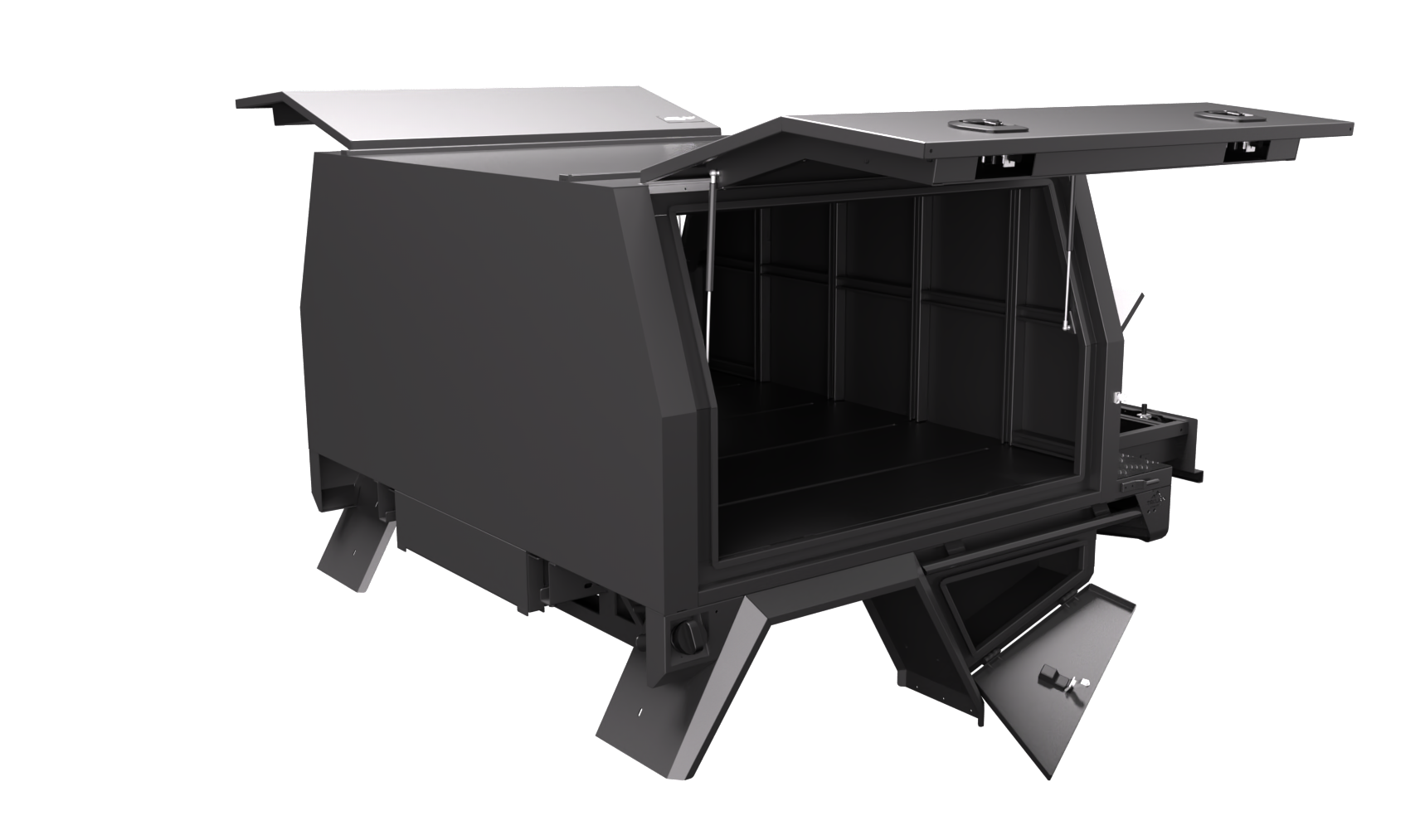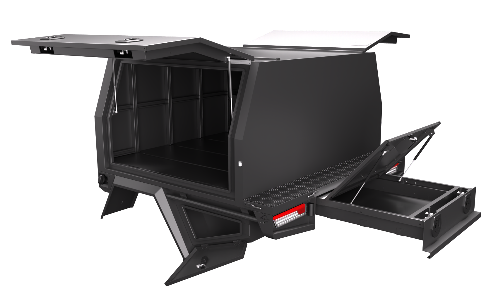 Our design and engineering team has always focused on making super durable canopies while keeping them lightweight and modular. The Chassis mount canopy is the perfect balance of weight and price savings. Our Service Bodies with a 3/4 canopy come in an ideal standard size of 1700mm long, 1850mm wide, and 860mm high. Some of our favourite features include:
